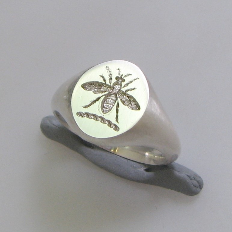 Bee crest seal engraved sterling silver 925 signet ring
