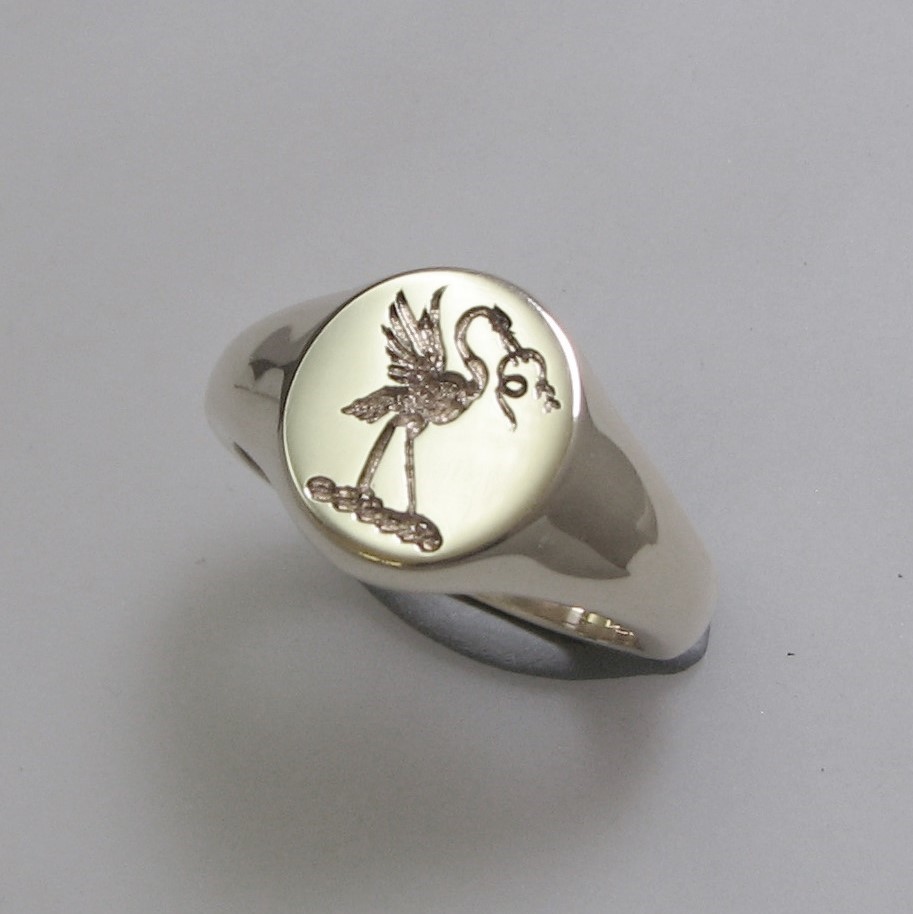 Heron bird with snake crest seal engraved sterling silver 925 signet ring