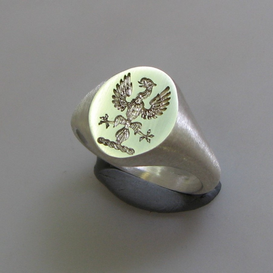 Phoenix crest seal engraved sterling silver 925 signet ring